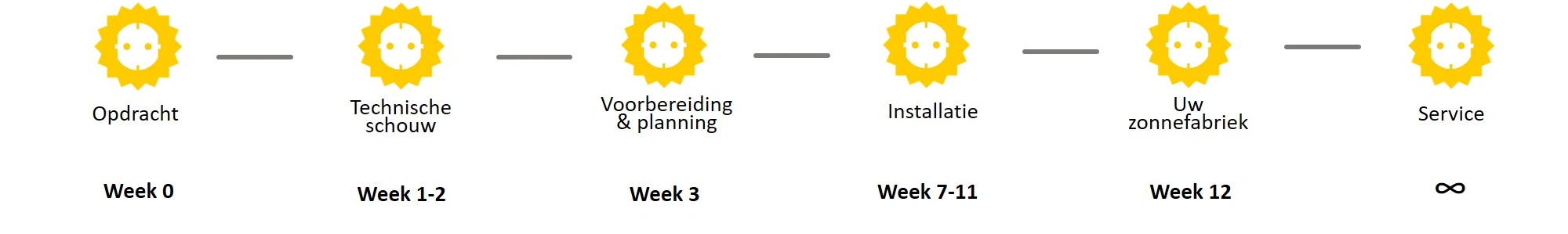 Below is an overview of our typical working process. The duration of each project may vary depending on your specific situation, but this illustration shows how the process ideally unfolds. We aim to complete your installation within three months.