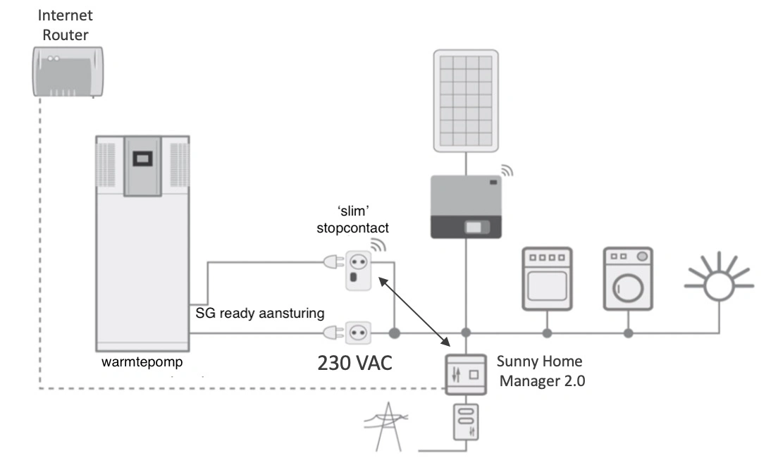 The first method (which we’ve discussed before) is direct control via a smart home energy manager, such as the Sunny Home Manager. In this setup, the heat pump is directly connected to the home energy manager, allowing precise control to maximize the use of solar power. However, this currently works only with a few heat pump brands, such as Stiebel Eltron and Vaillant.