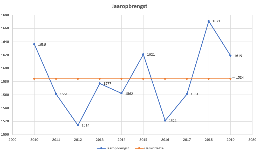 Omdat het de afgelopen tijd regelmatig in het nieuws is geweest, vroegen wij Hans of hij in de afgelopen 10 jaar iets heeft gemerkt van een eventuele terugloop in prestaties bij zijn zonnepanelen. Gelukkig kon hij hier negatief op reageren en gaf hij aan ‘weinig te hebben gemerkt van een terugloop in opbrengsten per paneel’. In de tabel hieronder is goed te zien dat de opbrengst ongeveer gelijk is gebleven. Wel vermeldt Hans dat hij de klimaatverandering wel heeft opgemerkt, de afgelopen twee zomers waren ‘extreem zonnig’.